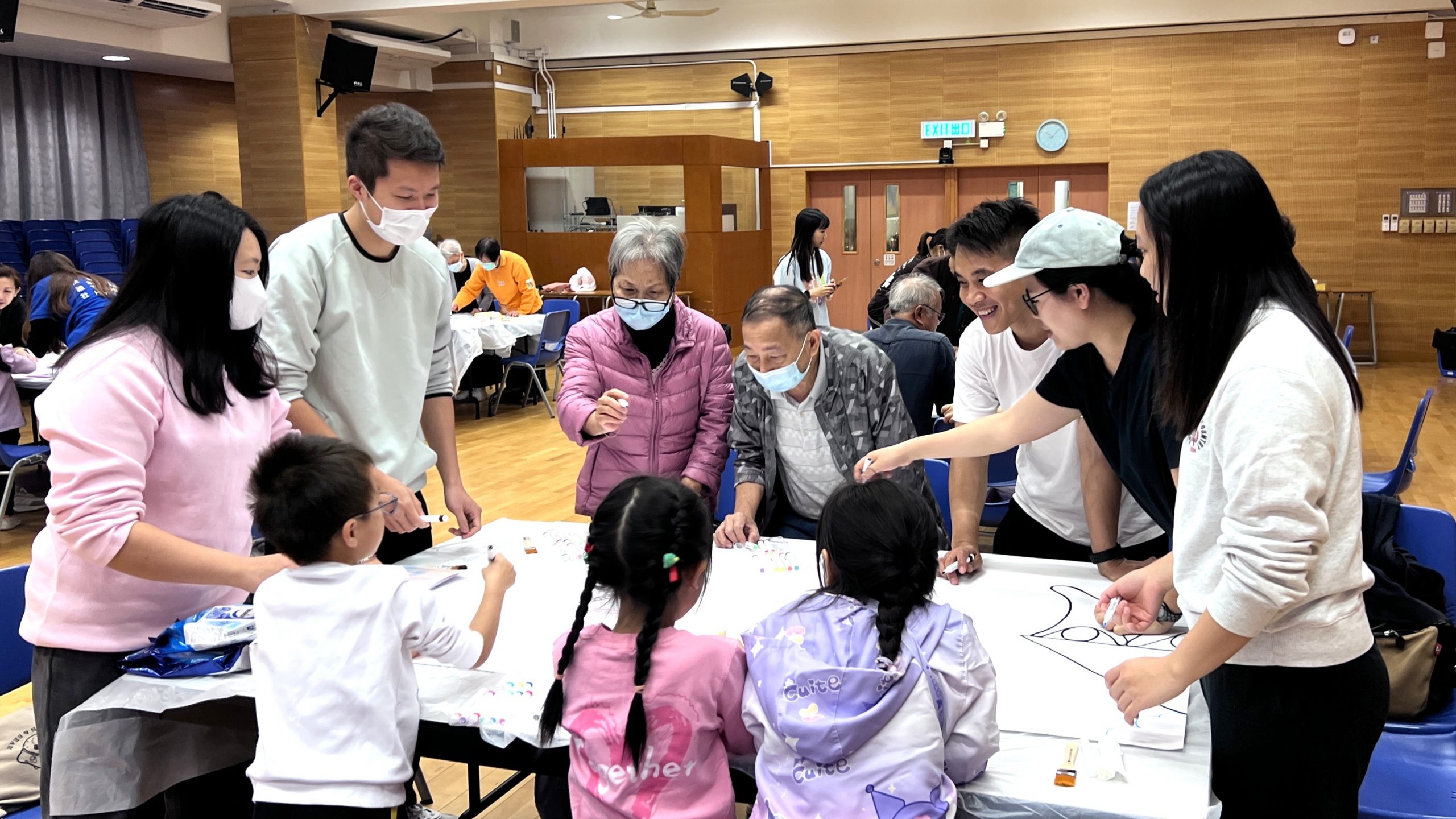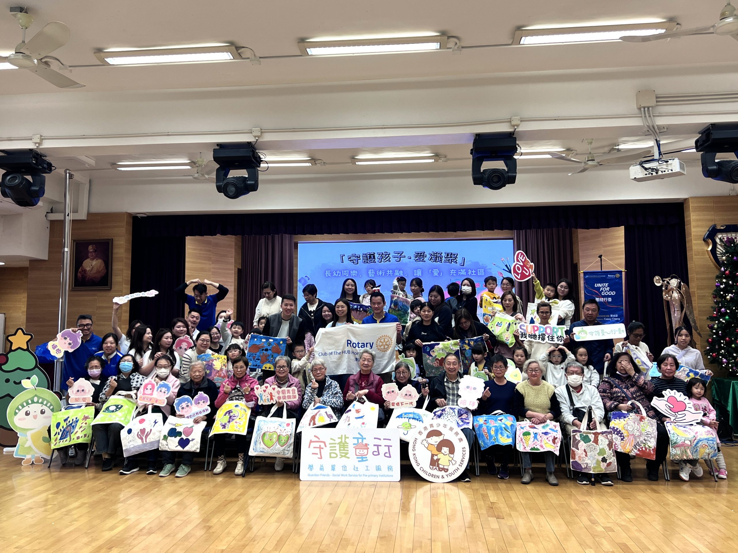 活動旨在為幼稚園家庭及長者提供共同參與及交流的平台,促進跨世代互動及關懷,共同營造充滿愛與連繫的社區氛圍。啟動儀式由港匯扶輪社社長陳良貴醫生及本處服務總監梁富琼女士主持。活動中,超過60位參加者一同完成以「愛、共融、和諧、連繫、守護及希望」為主題的巨型合併畫。作品將製成環保袋及水杯,贈予社區人士,藉此推廣保護兒童及送暖訊息。