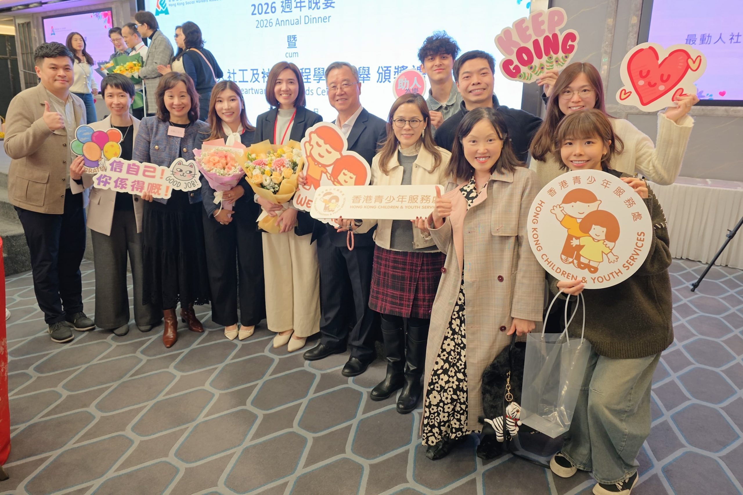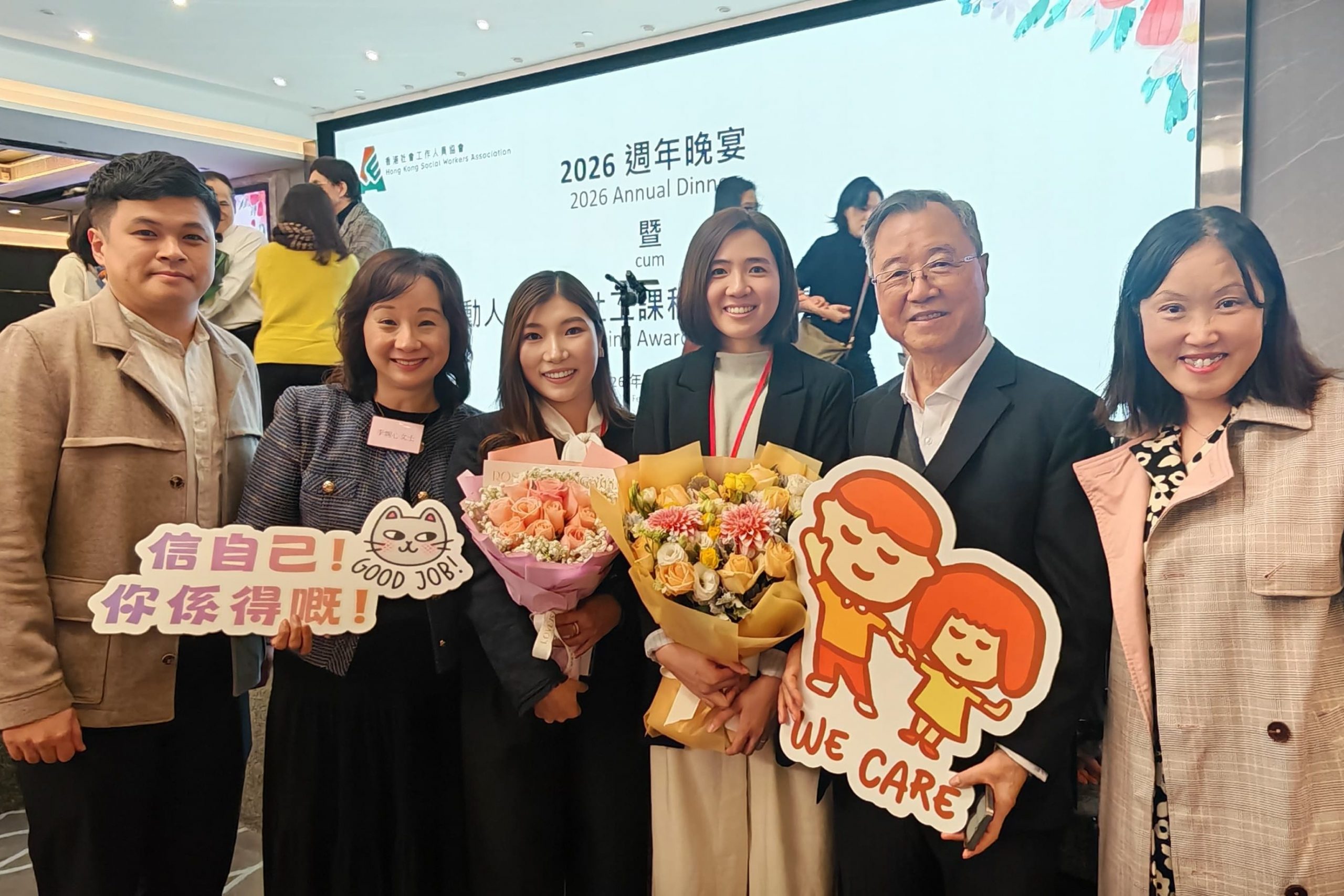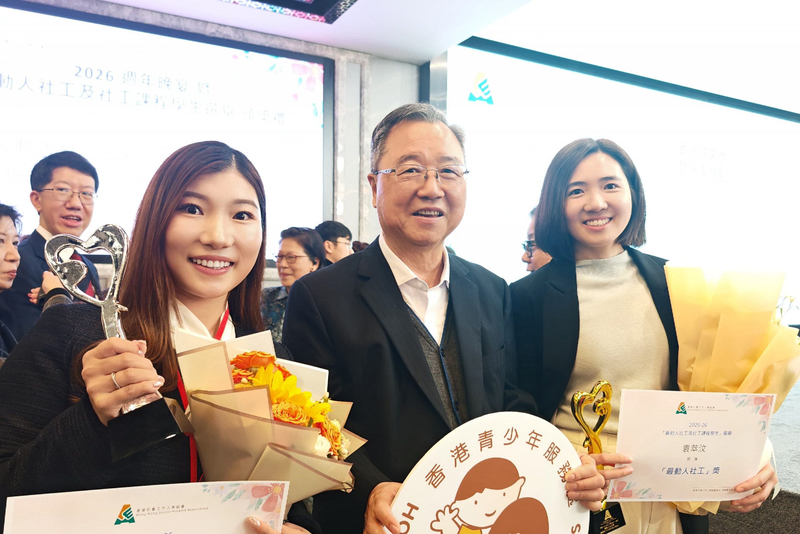 社工袁萃汶女士獲選為「動人社工」之一,而黃恩沛女士則榮獲「優異獎」,表現備受肯定。頒獎典禮已於2026年2月10日(星期二)假座香港社協週年晚宴中舉行,當晚氣氛熱烈,見證社會服務社工於不同崗位上默默耕耘、堅守初心的動人故事。